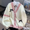 Cardigan en maille blanc à rayures roses style Kawaii Mori Kei