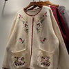 Cardigan en maille crème avec broderie florale style japonais Mori Kei