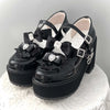 Black Gothic Lolita Platform Shoes with Large Bows and Pearl Buckles