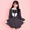 Checkered Japanese School Dress with Bow and Lace Collar Voir les options