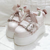 Kawaii pastel pink platform sneakers with bows and pearls Jirai Kei