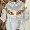 Pastel Patchwork Mori Kei Blouse with Bunny Embroidery Vintage Japanese