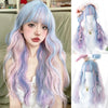 Pastel Rainbow Wavy Wig with Bangs Blue Pink Purple Kawaii Harajuku Cosplay Hair