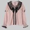 Pink Kawaii Lolita Shirt with Black Lace Trim and Pearl Bow Detail Voir les options
