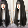 Straight Black Wig with Bangs Elegant Japanese School Style