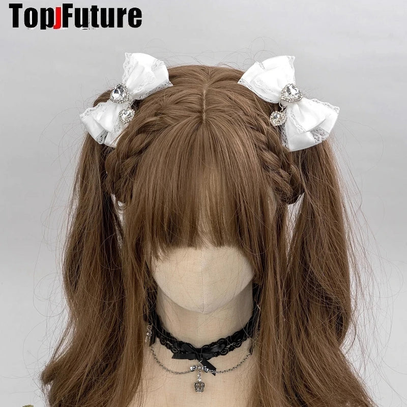 Acessório de Cabelo Branco com Laço de Renda e Coração de Cristal Sweet Lolita Jirai Kei Fairycore