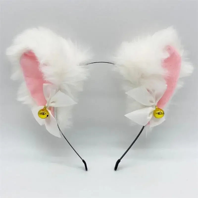 Acessório de Cosplay Kawaii Jirai Kei: Bandolete com Orelhas de Gato Felpudas, Laço e Guizo
