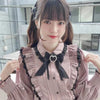 Blusa Rosa de Manga Comprida com Fita e Folhos Moda Harajuku