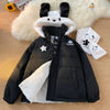 Casaco com Capuz Estampa de Vaca Kawaii - Casaco de Inverno Preto e Branco em Pelúcia com Orelhas de Animal e Conjunto de Cachecol