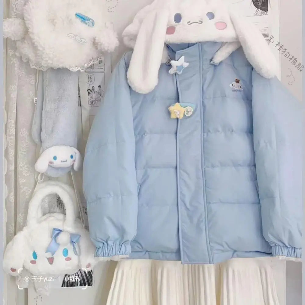Abrace o charme deste Casaco com Capuz de Orelhas de Coelho Kawaii, desenhado num tom azul claro com detalhes felpudos. Perfeito para o inverno, este casaco inspirado em animais fofos oferece calor e estilo com a sua forma de desenho animado e tecido macio e confortável.