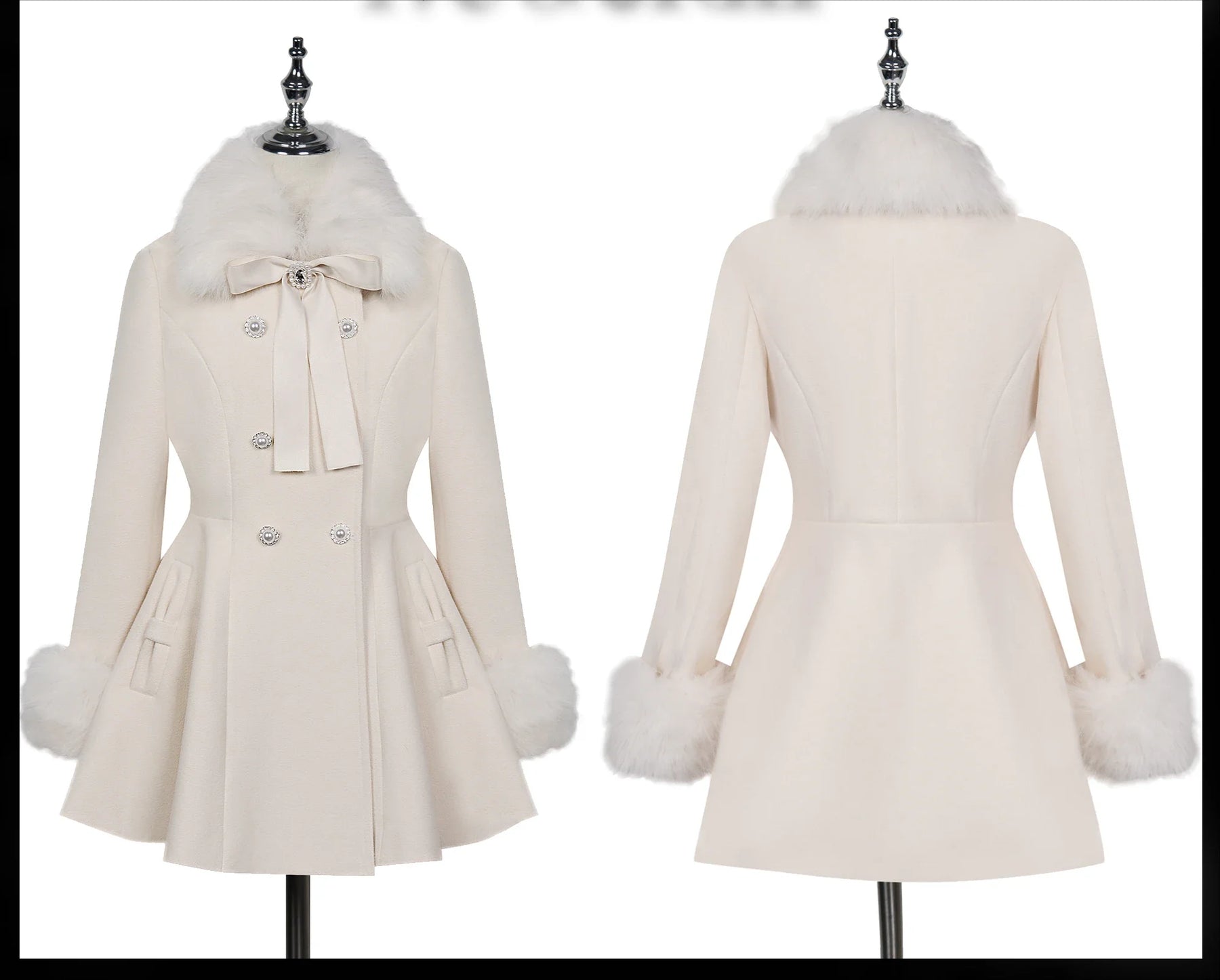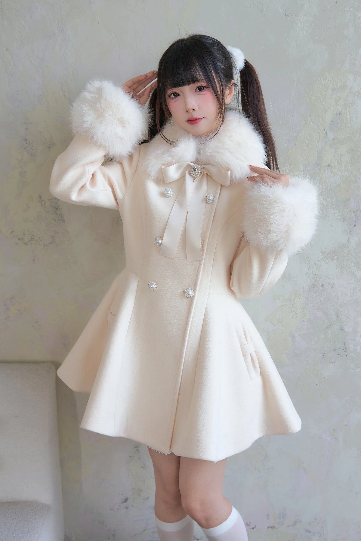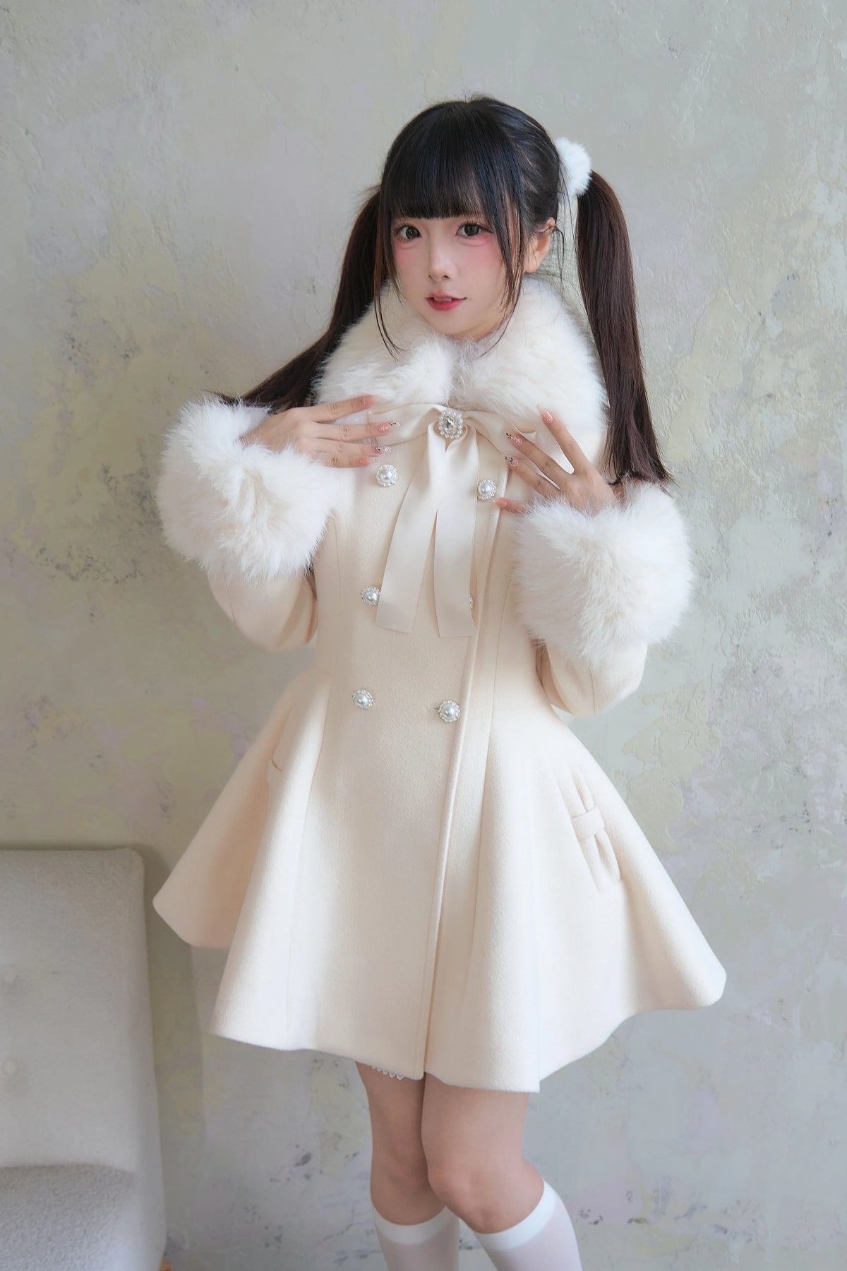 Abrace o charme da moda japonesa com este Casaco Lolita Branco Kawaii. Projetado com um fecho de abotoamento duplo e acabamento em pele, este casaco de inverno estilo princesa oferece um visual doce e elegante, perfeito para as estações mais frias.