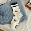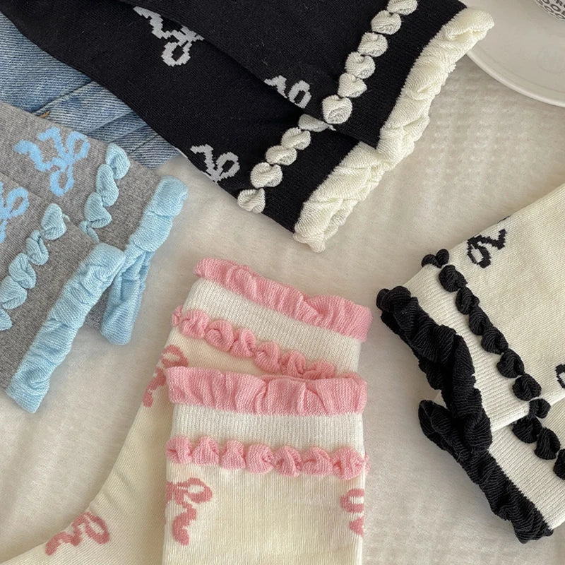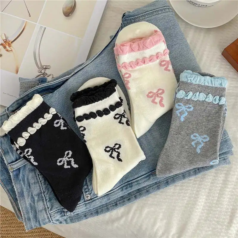 Conjunto de 4 meias brancas com padrão de laço estilo kawaii japonês Lolita