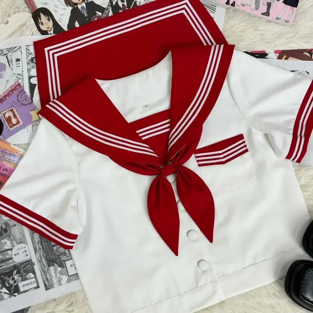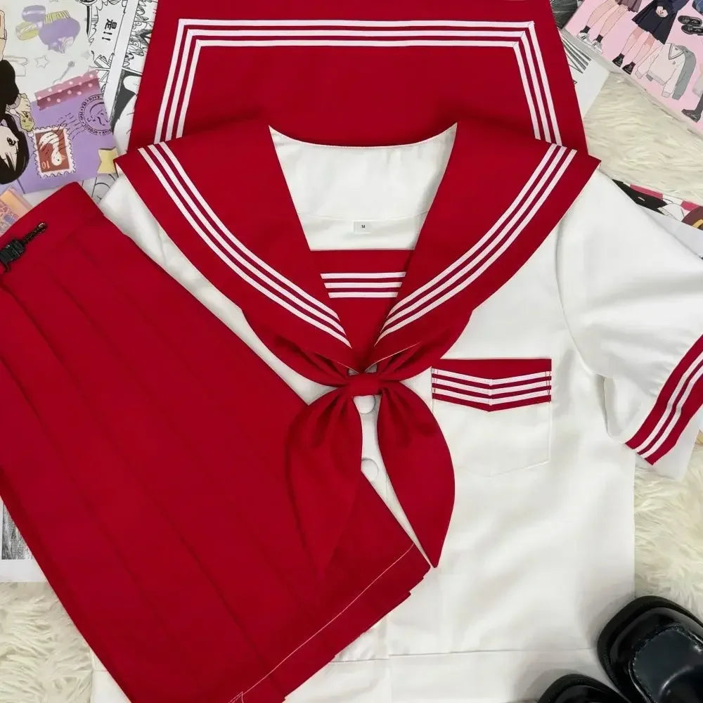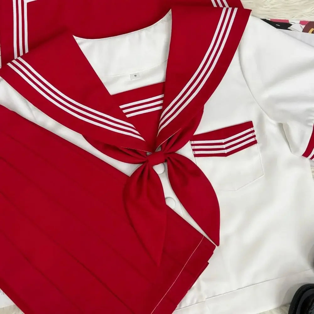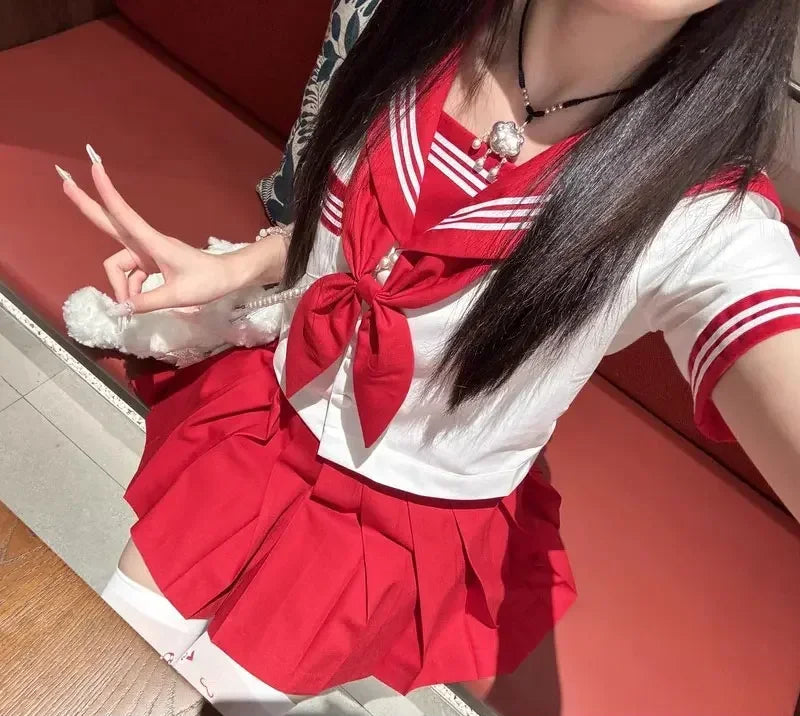 Conjunto de Uniforme Escolar Japonês Vermelho - Top de Marinheiro e Mini Saia Kawaii Cosplay