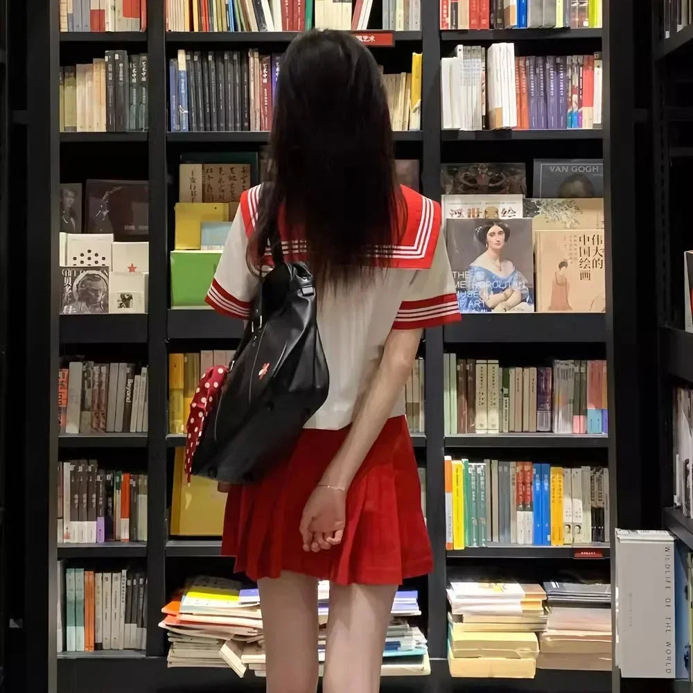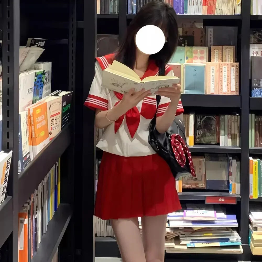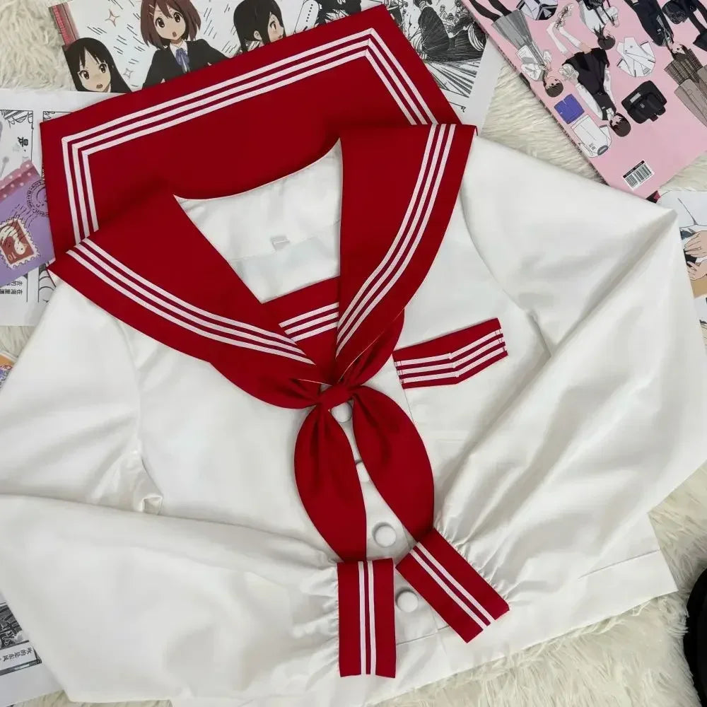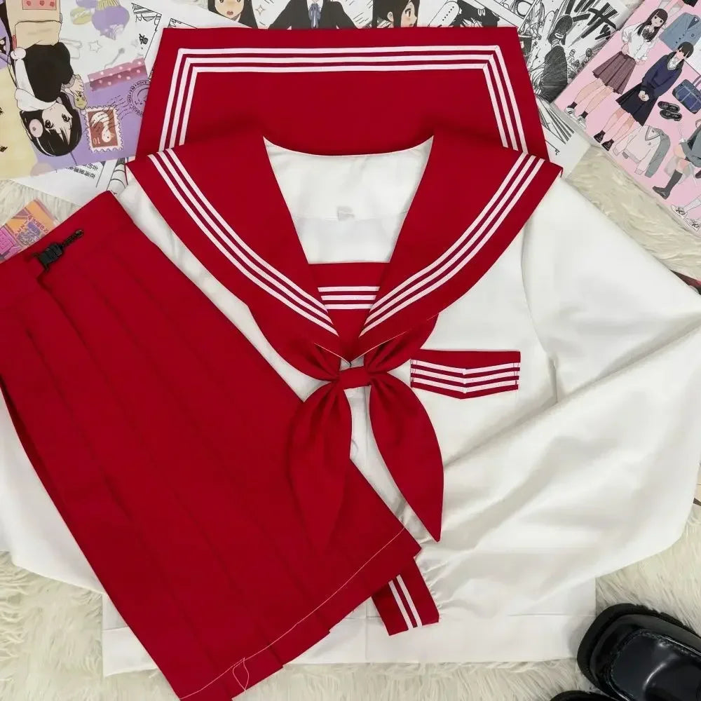Conjunto de Uniforme Escolar Japonês Vermelho - Top de Marinheiro e Mini Saia Kawaii Cosplay