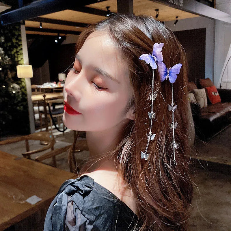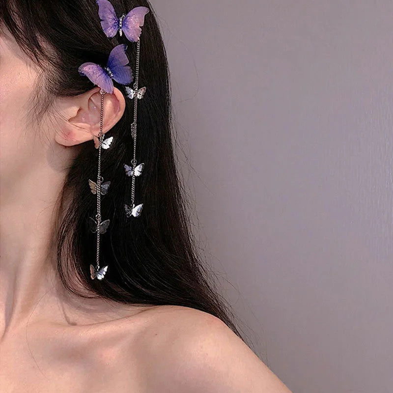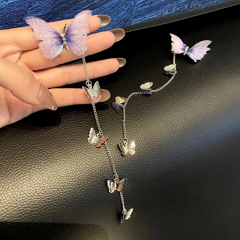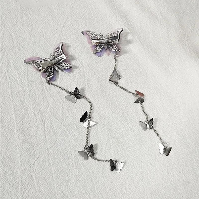 Jirai Kei Butterfly Hair Clip com Correntes Pendentes Estética Fairycore Japonesa