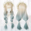 Peruca Blonde and Mint Blue com Touca de Renda Franzida Sweet Lolita Tenshi Kawaii Cosplay