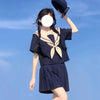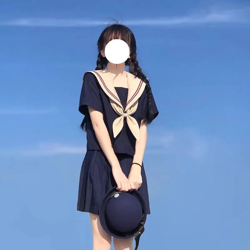 Este uniforme escolar japonês azul-marinho apresenta uma blusa de marinheiro de manga curta, perfeita para um visual clássico e elegante.