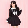 Vestido Escolar Japonês Preto com Laço e Gola de Renda