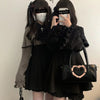 Vestido Gótico Preto Jirai Kei com Mangas Largas e Laço Cruzado