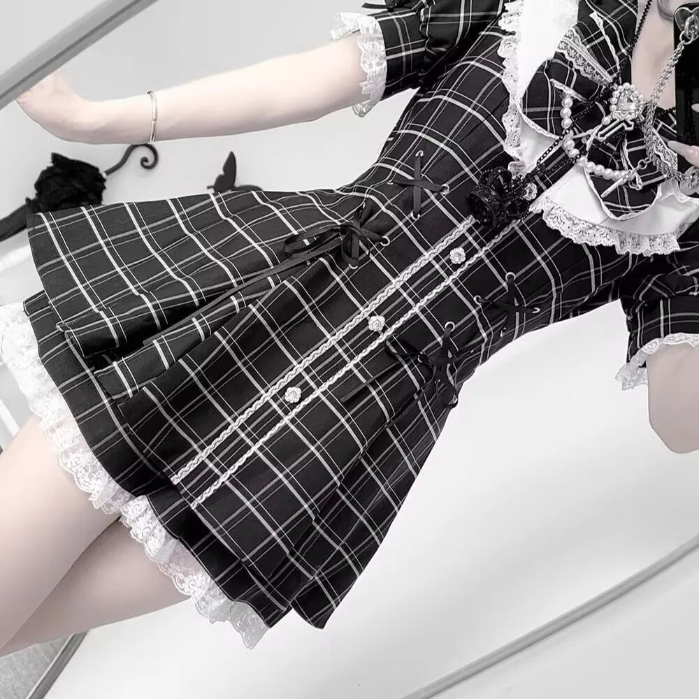 Vestido Jirai Kei Preto com Xadrez - Estilo Uniforme Escolar Gothic Lolita Moda de Rua Japonesa