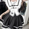 Vestido Kawaii Cat Sailor com Laço e Gola com Estampa de Patas